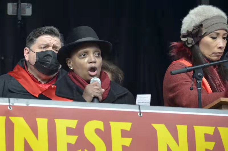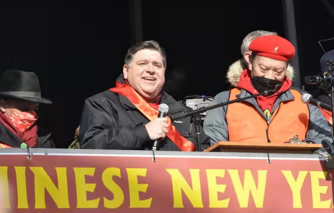 普利兹克州长和莱特富特市长在致辞中向大家致以虎年春节祝福,表示华人社区是伊利诺伊州和芝加哥市多元文化大家庭的重要组成部分,今天的游行活动展现了华裔社区的历史和成就,团结与活力。他们感谢华人社区对当地社会繁荣发展做出的重要贡献,并重申反对仇视亚裔行为。