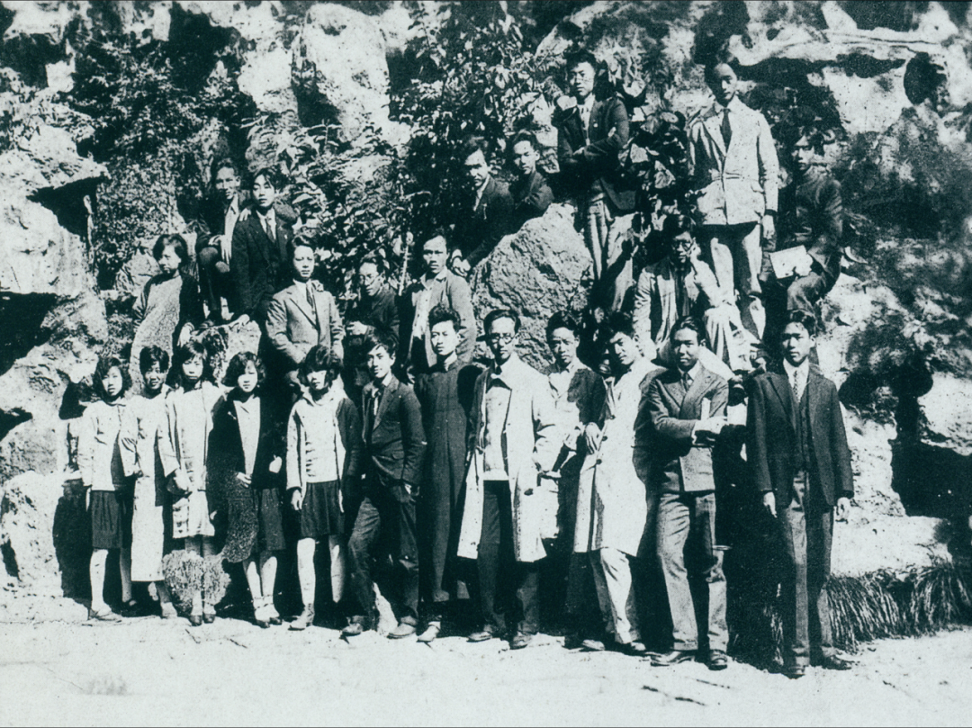 图 | 1931年秋,为送别即将赴法留学的黄显之,在校“一八艺社”成员在西湖边合影留念。