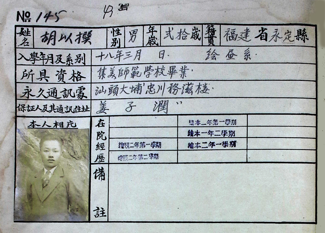 图 | 胡以撰入学国立艺术院的学生档案表 1929年3月