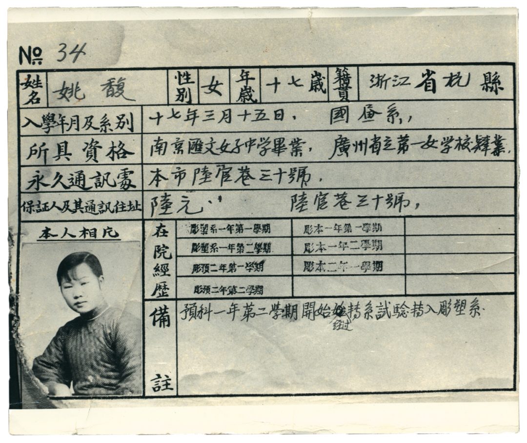 图 | 姚馥入学国立艺术院的学生档案表 1928年3月