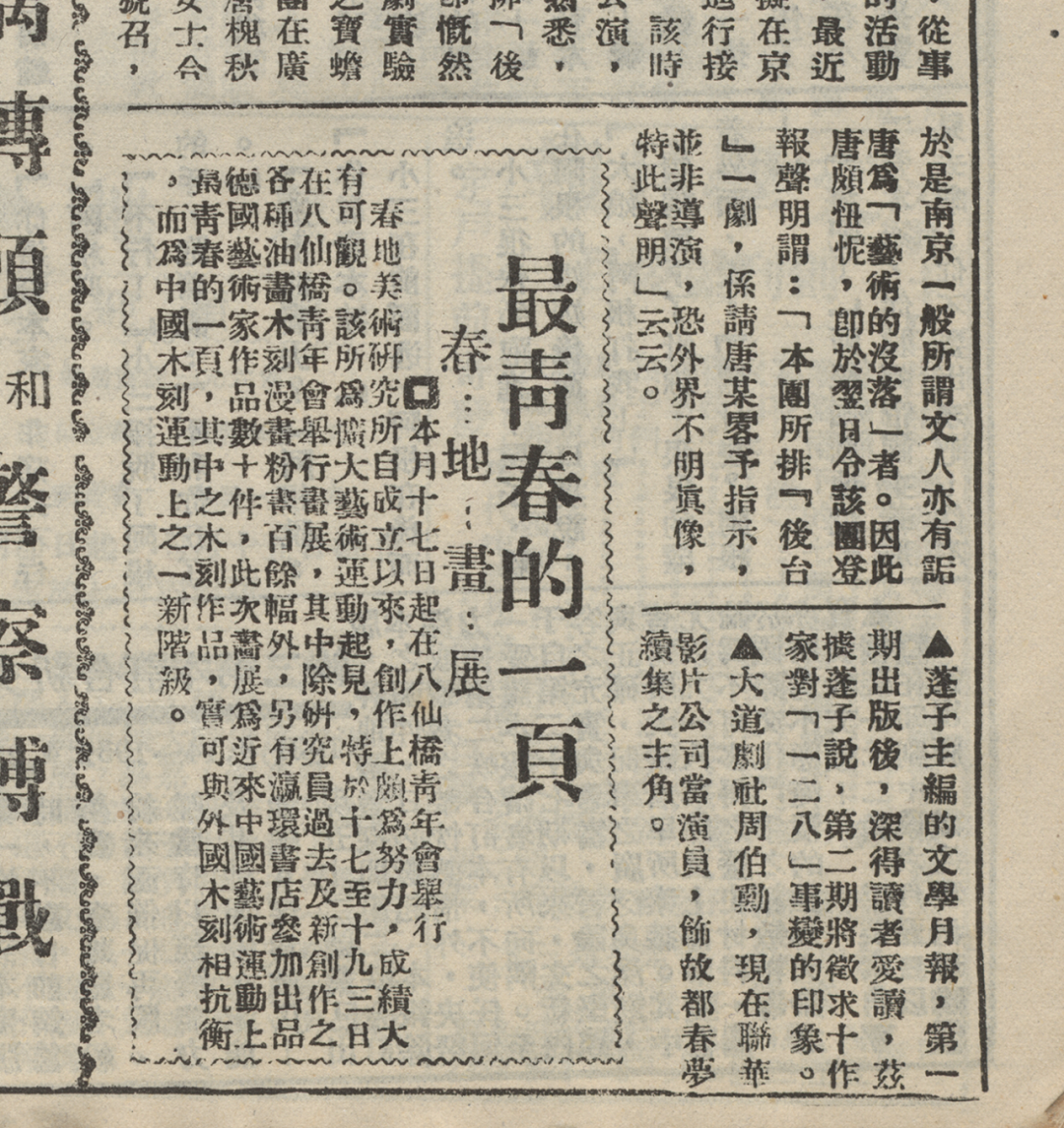 图 | 1932年春地画展展讯 《文艺新闻》1932年6月20日