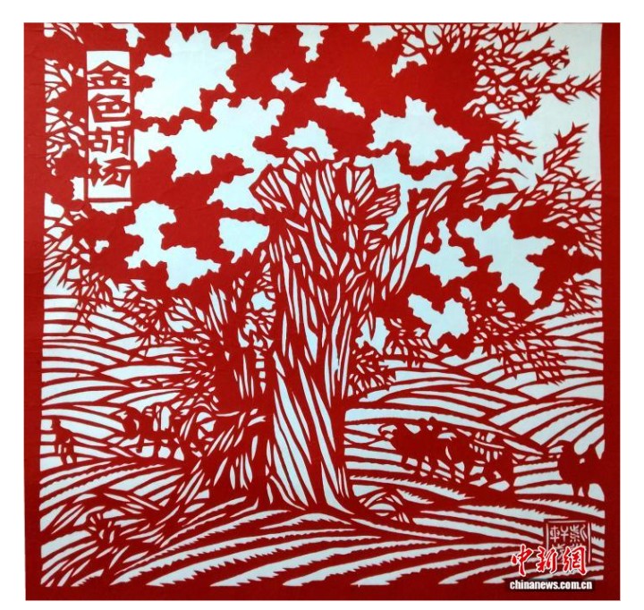 剪纸作品《金色胡杨》。林贵福 供图