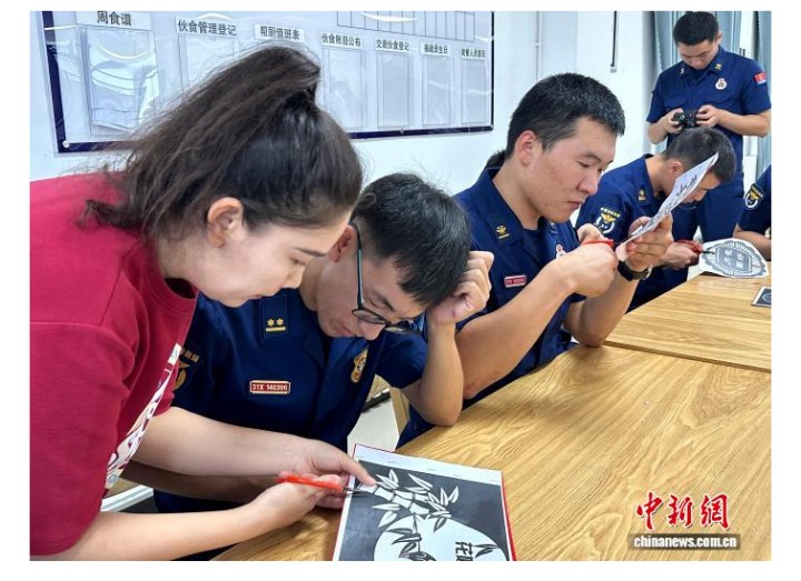 2024年中秋节,夏迪古丽将耗时5天创作的剪纸作品《全民消防生命至上》,赠予哈密市消防救援支队红星大道特勤站。当日现场,她教消防员们剪“月饼”、兔子灯笼,红纸在不同人手中流转,剪出暖心的作品。