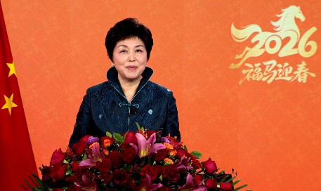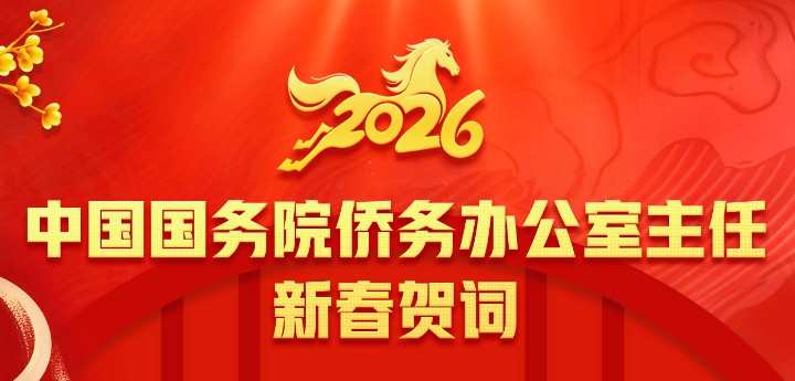 2026年是“十五五”开局之年。我们将继续坚持“以人为本,为侨服务”宗旨,全面贯彻落实侨务政策,竭诚深化为侨服务,共同画好海内外中华儿女最大同心圆,凝聚起中华民族伟大复兴的磅礴伟力。我诚挚地邀请侨胞们常回家看看,饱览祖国锦绣山河,感受各地风土人情和时代新貌,看看贺兰山下、滇藏线旁,不仅有塞上江南、雪山峡谷的壮丽奇观,更有各民族团结进步、中华民族一家亲的生动景象;洞庭湖畔、寒山寺外,不仅有烟波浩渺、枫桥乌啼的四时风光,更有寻常百姓多姿多彩、烟火升腾的生活气息。也希望侨胞们以多种方式向住在国亲朋好友、各界人士,讲讲美丽中国、家乡的故事,让世界更了解中国、了解中华民族,助力中外文化文明交流互鉴。