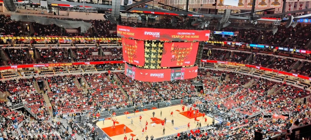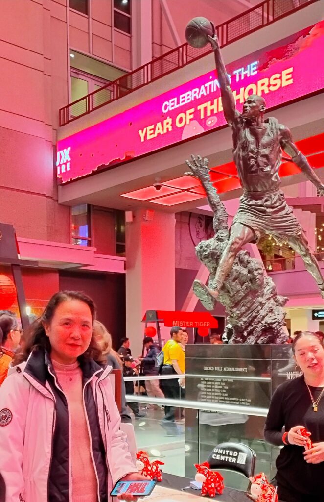 芝加哥公牛队每逢中国春节期间的主场都要展现他们尊重各民族传统文化在美国多元文化层次中的存在继承的现实意义。今年的比赛场上,除了关孟华大师的国歌演奏,还有华裔舞蹈演出,场外还布置了书法等活动。尽管公牛队没能取胜,芝加哥球迷们依然一如既往地为公牛队热情加油鼓劲。