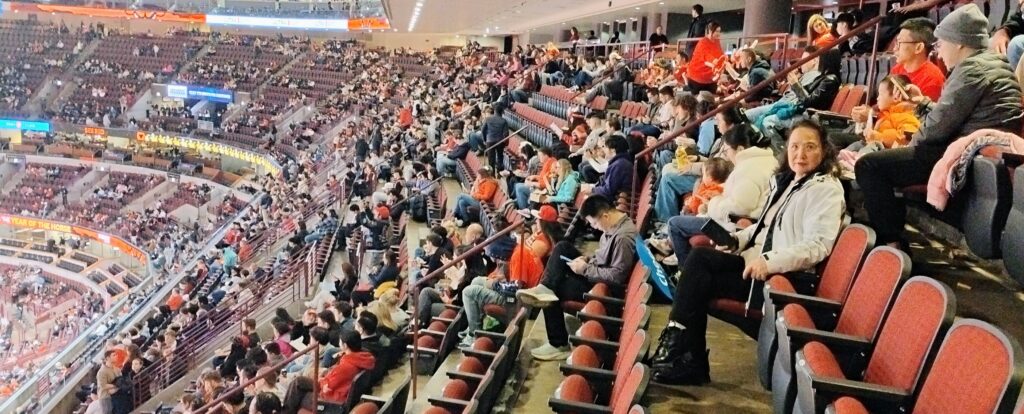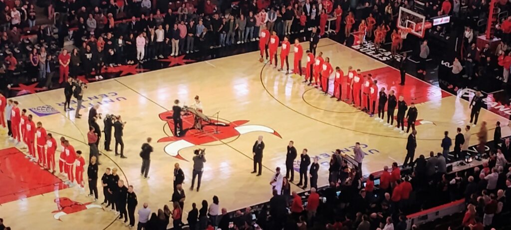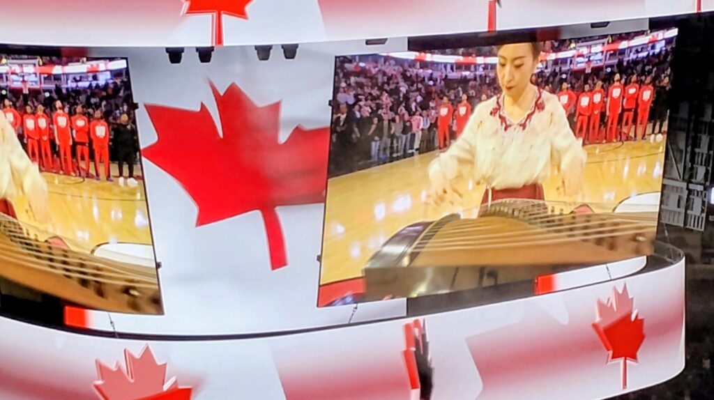 美国华网王敏华胡大江20260219摄影报道:芝加哥华裔古筝演奏家关孟华今年再次被芝加哥公牛队邀请在芝加哥主场对战加拿大多伦多阵龙队的开球之前,成功用古筝演奏加拿大和美国国歌,引爆全场热烈欢呼。